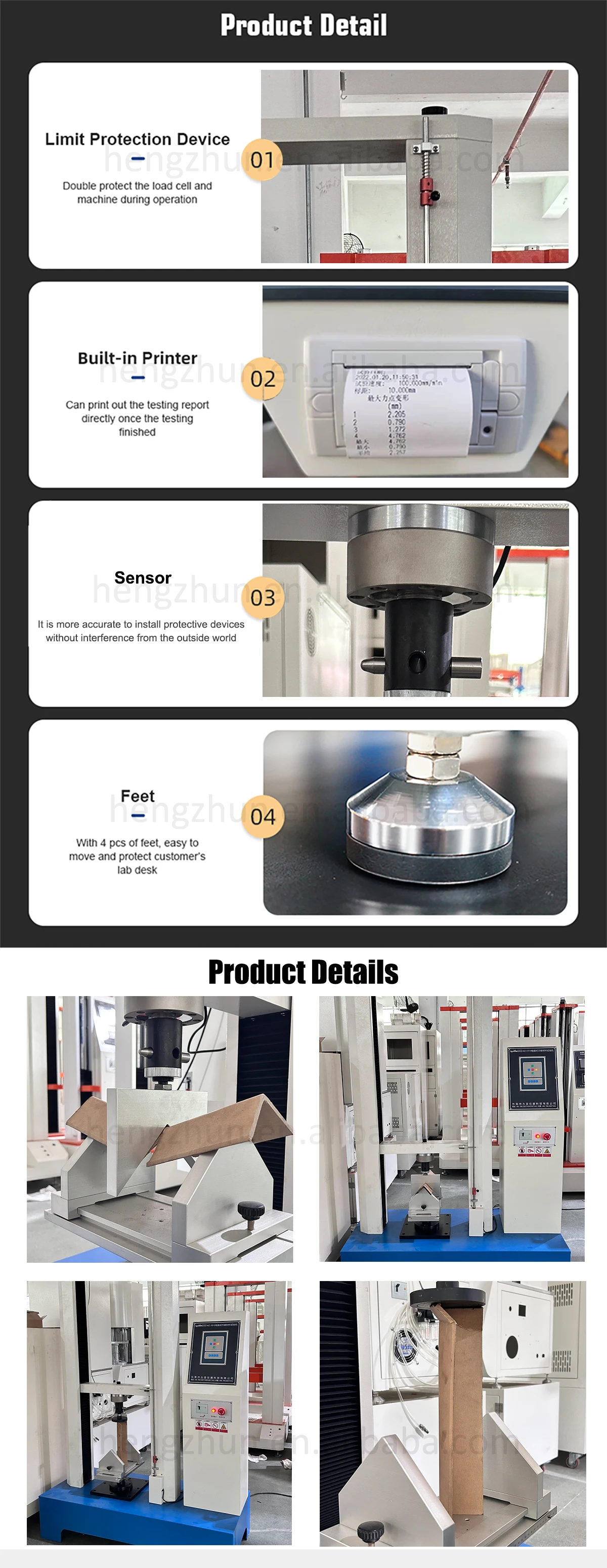 cardboard compression test equipment Adopted photoelectric encoder to measure the displacement, the controller uses the embedded single-chip microcomputer structure with multi-function software, which combined with measurement, control, ulculationandstorage. It can automatic calculate the stress, rate of elongation (need to add with extensometers), tensilestrength,elastic modulus, automated statistical results; automatically recorded the biggest point, breaking point, thedesignated point value or the rate of elongation; Using computer to display the dynamic curves in the testingprocess and process the data, After testing, it can re-analysis and editing the data by amplifying the curvesthroughthe graphics processing module, printing reports, product performance reached the international advancedlevel.