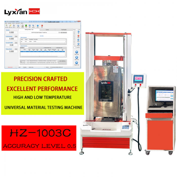 High and Low Temperature Tensile Testing Device HZ-1003C mainly applied to test the force of metallic and non-metallic materials in the high temperature environment, the force such as tension, compression, bending, shear, peel, tear or two-points extensions (need to add extensometer) and others., the material such as rubber, plastic, wire and cable, optical fiber and cable, safe belt, leather belt composite materials, plastic profiles, waterproof membrane, steel, copper, profiles, spring steel, bearing steel, stainless steel (as well as other high-hardness steel), castings, plate, strip, non-ferrous metal wire .Corresponding standard :